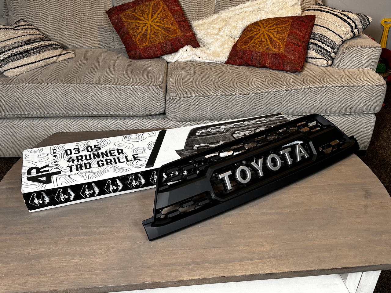 Upgrade the look of your 2003-2005 Toyota 4Runner with our custom TRD style grille, designed to bring a modern touch to your rig. Featuring a matte black finish with bold gray TOYOTA lettering, this grille is made to add the modern look to your older rig. Customize your 4th Gen 4Runner with a variety of add-ons, including the popular LED Toyota emblem and RGB lights, giving you full control over your runners style.