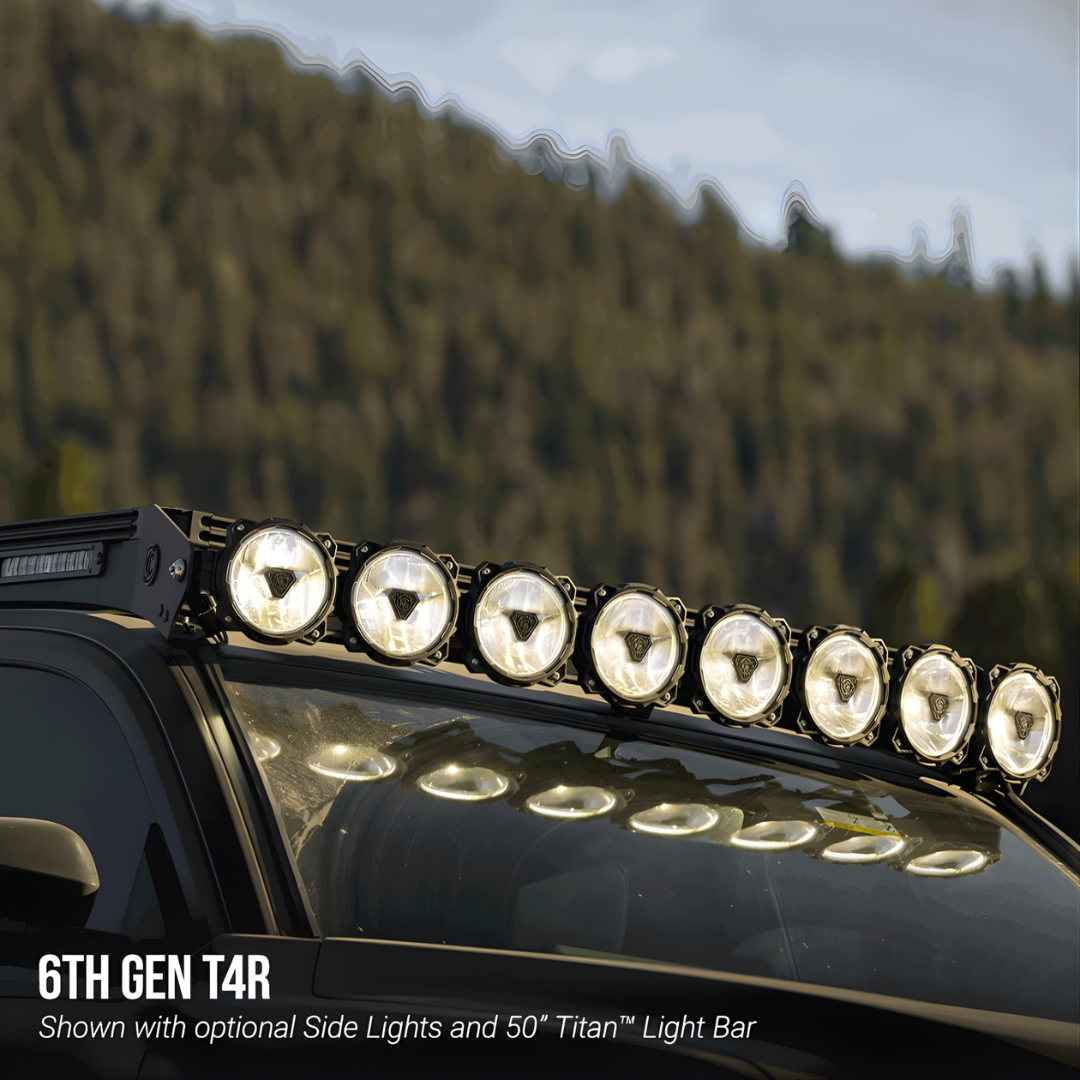 Compatible with KC’s Gravity® Titan™ (SKU 91418), Pro6® (SKU 91308) overhead light bars, and up to four Profile 10" SideCast™ flush-mount lights, the rack supports a complete 360° lighting system.